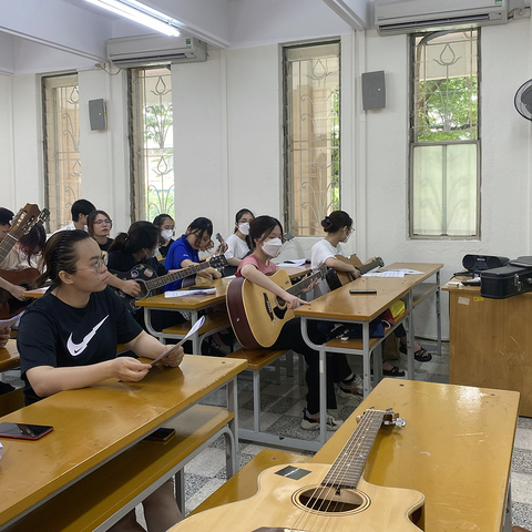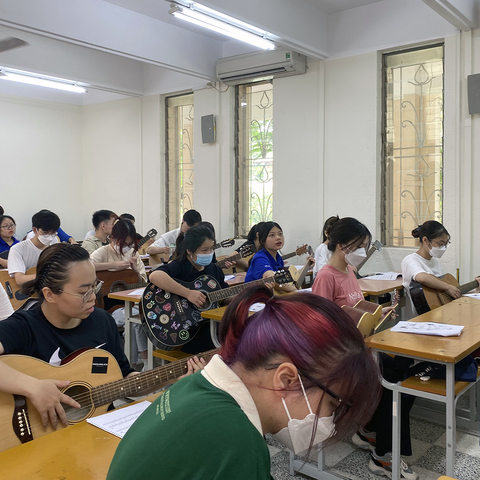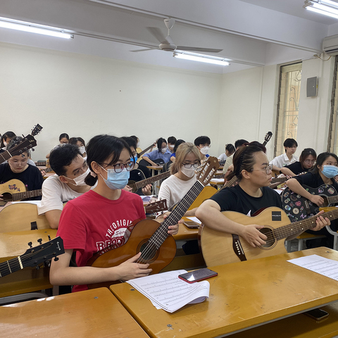 Harmony of Sunshine proudly introduces its unique Artistic Sensibility Training Program designed for students at the University of Foreign Languages. This program not only enhances students' ability to appreciate and experience music but also fosters creativity and a love for learning and work through the guitar.